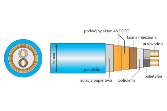 - Ekranowanie: plecionka z miedzi 4N5 OFC + taśma miedziana